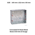 Be the first to review “Electrotech Integrators Concealed GI Sheet Metal Boxes (0.8 mm) 22 Guage 78 mm x 232 mm x 50 mm”