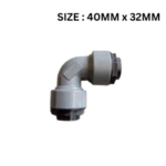 The Quickair Push Fit Reduced Elbow 40mm to 32mm is a high performance modular fitting from the Quickair aluminum piping system by Canares Engineering Co. This 90Degree reduced elbow allows you to change direction while smoothly stepping down from a 40mm OD main line to a 32mm OD branch or drop line, making it ideal for routing piping around corners and transitioning to slightly smaller outlets in medium to large compressed air distribution systems.