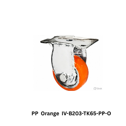 Polyurethane (PU) orange wheel with pressed steel brake castor for light to medium duty applications, enabling controlled movement with secure braking.