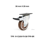 | Wheel dia (mm) | 38 (1”’) | Tread width(mm) | 17mm | Load capacity(kg)per pc | 20kg | Wheel material | TPR | Loading hight(mm) | 53mm | Bearing | Single Ball Bearing | Plate size | 36X28 |
