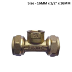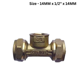 Unipro Female Tee Brass Compression Fitting – 14MM x 1/2″ x 14MM – Pack Of 12Nos