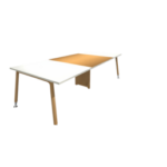 Bloomy MT is a sleek, modern rectangular meeting table featuring a warm wood-finish tabletop paired with crisp white legs, ideal for contemporary office spaces.